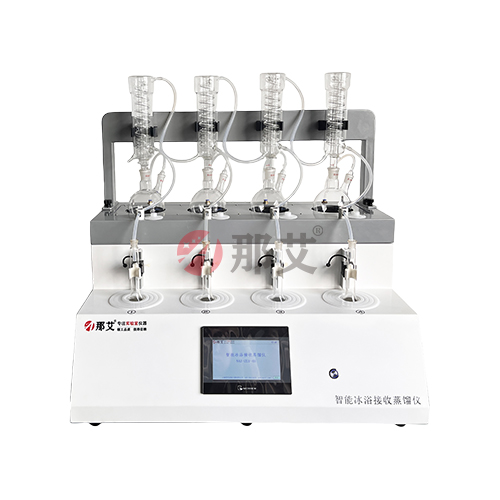 在食品類等蒸餾項目中,有一些檢測項目是比較特殊的,需要對收集的餾出液進行冰浴接收,比如檢測白酒中的酒精度、食品中的N-亞硝胺、乙酸鈉等。蒸餾過程復雜,同時在接收端對收集的餾出液進行冰浴接收,防止待測液體的有機成份二次揮發。目前,國內多數實驗室均采用純手工方式進行此類項目的實驗操作,整個過程費時費力,搭配的簡易實驗裝置弊端多多,冰浴時多采用冰塊或簡單的冰水混合物處理,但時間長了失去溫度效果需要再重新更換。 所以那艾針對此類蒸餾的痛點研發智能冰浴接收蒸餾儀,在餾出液收集區域增加獨立可控高效制冷模組,長期保持收集瓶0°狀態,實現國標0°冰水混合接收要求,減少實驗過程的操作繁瑣度。
